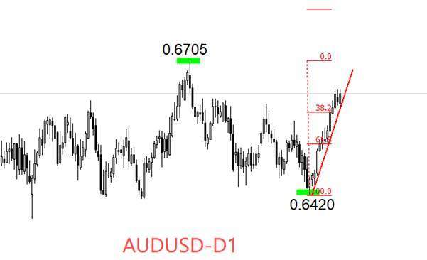 中短期来看,AUDUSD出现了0.6705中期高点和0.6420中期低点,根据摆动理论,下一个重要的中期高点正在形成过程中。0.6420之后的上涨波段力度较强,13个交易日当中仅仅出现了一根小阴线。在强势上涨阶段,该波段有可能触及前一个摆动高点0.6705点。最新市价0.6639,刚刚突破前一轮下跌波段的0.618分位处,面临回调可能。如果行情止步于此,新的中期高低形成后,将难以向上拓展更大空间。