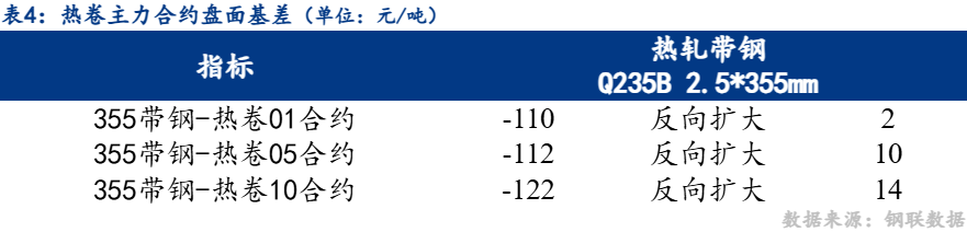 10日市场热卷05合约与唐山355带钢价差反向扩大10元/吨,热卷10合约与唐山355带钢价差反向扩大14元/吨。