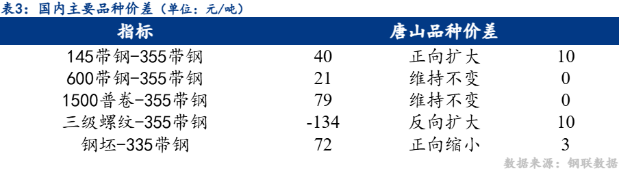 华东与华北地区价差维持不变;华南与华北价差正向缩小20元/吨。