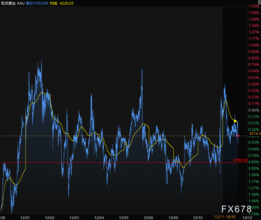 汇通财经APP讯——周四(12月11日)亚欧时段,现货黄金走出冲高回落走势,回吐了部分周四凌晨美联储降息利好的涨幅。