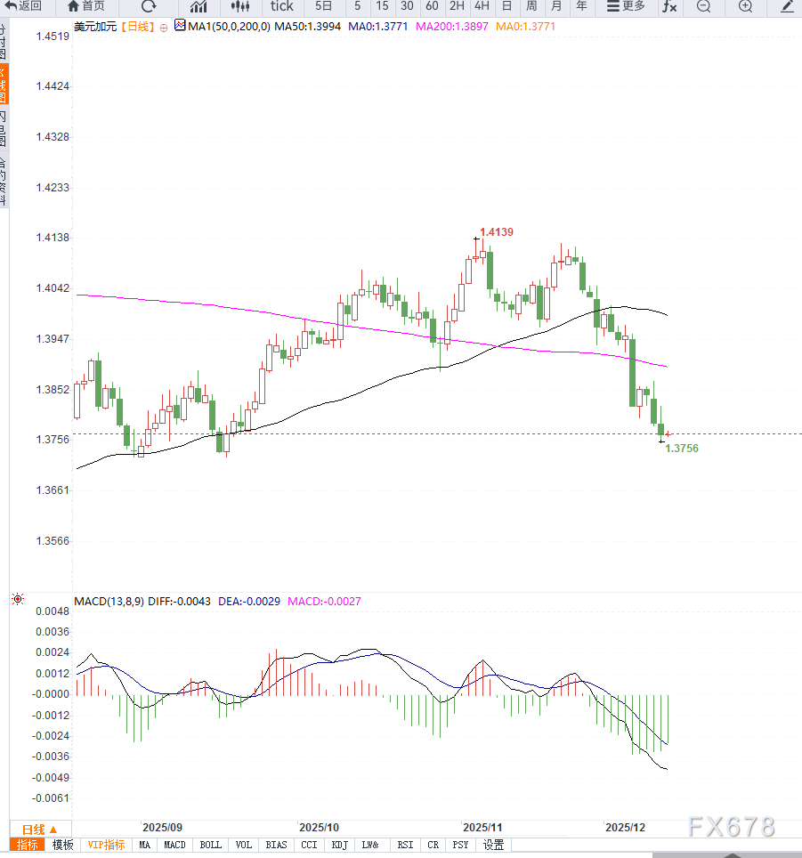 北美外汇策略师表示:“美联储的鸽派基调不断加强,而加拿大央行立场趋于中性偏鹰,这种政策分化是当前美元兑加元持续承压的核心原因。”