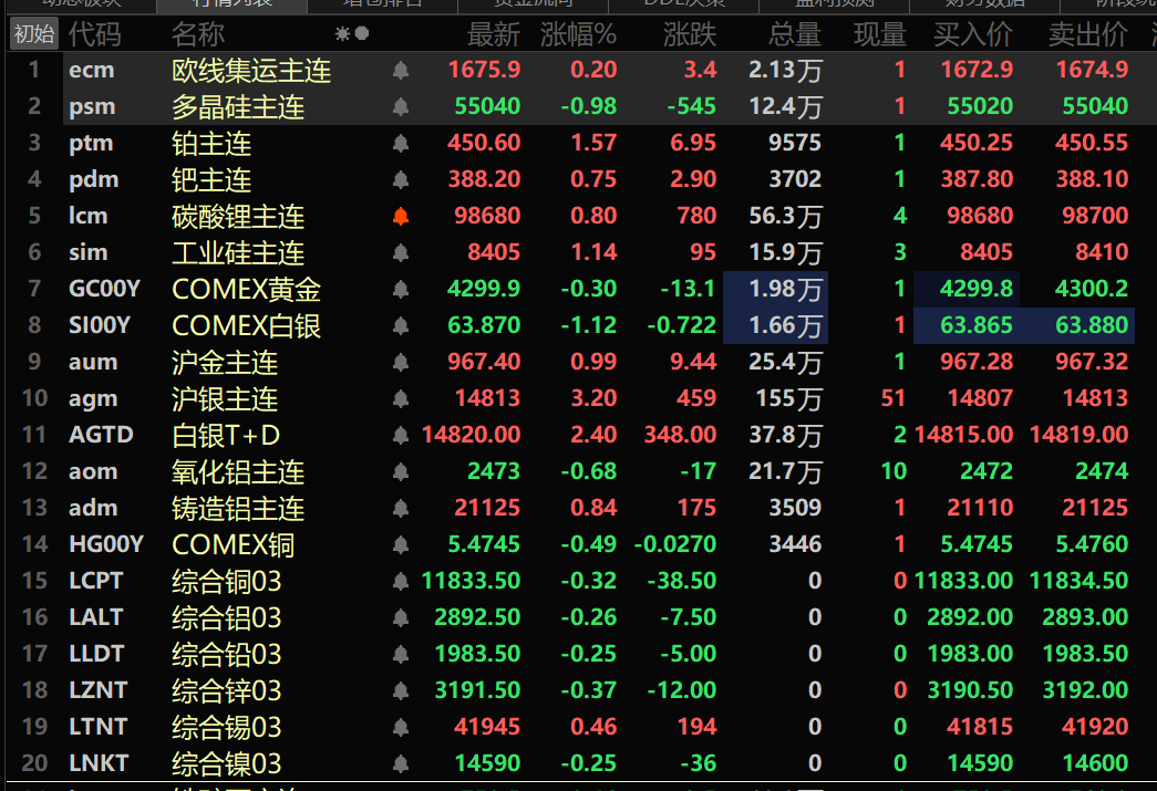 此外,截至午间收盘,铂主连期货涨1.57%,钯主连期货涨0.75%。