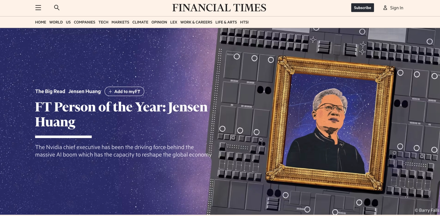 英国《金融时报》2025年度人物揭晓:英伟达CEO黄仁勋