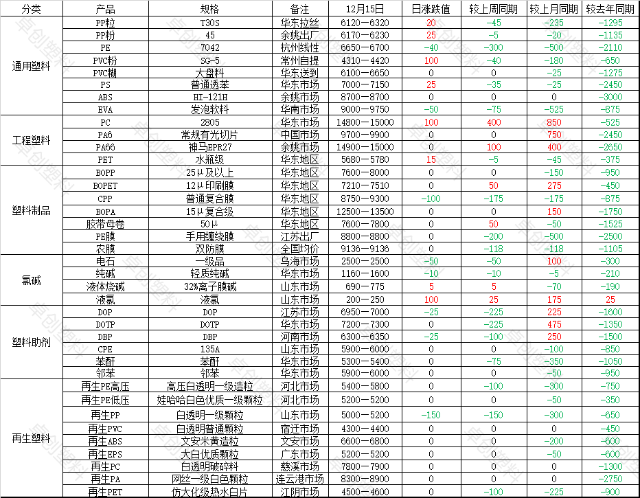 备注:以上表中所取价格为各产品代表市场或是代表区域价格,价格为截止到16:30的收盘价格,更多市场价格及详情内容请关注卓创资讯各产品网站或手机客户端。