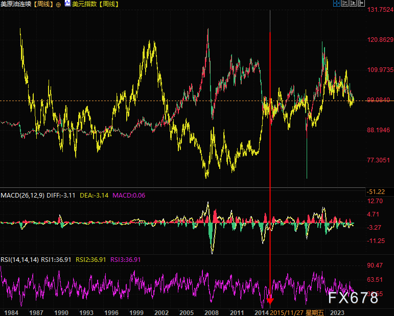 (美元指数叠加美原油期货合约连续,来源:易汇通)