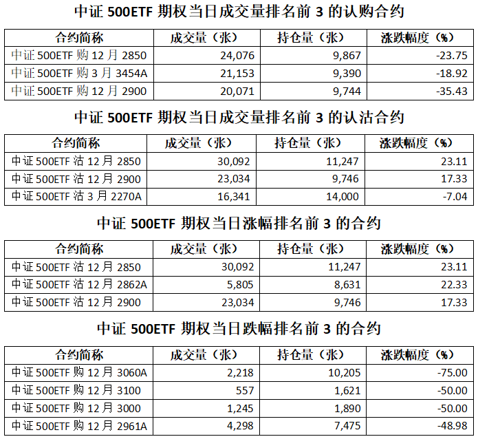 中证500ETF期权总成交面额83.59亿元,减少12.79%,期现成交比为0.03,权利金成交额1.02亿元;期权总成交量289,277张,减少15.83%,其中认购期权成交量144,181张,认沽期权成交量145,096张,认沽认购成交比率为1.01(上一交易日认沽认购成交比率为1.09)。
