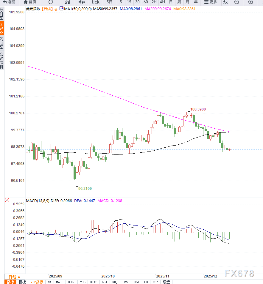 汇通财经APP讯——周二欧洲早盘,美元指数继续承压,维持在98.25附近震荡。市场整体交投情绪偏向观望,主要原因在于多项重要美国宏观数据即将集中公布,尤其是被延迟发布的非农就业报告,使投资者在方向选择上保持克制。