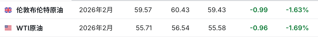 3.截至发稿,WTI原油跌1.69%,报55.71美元/桶。布伦特原油跌1.63%,报59.57美元/桶。