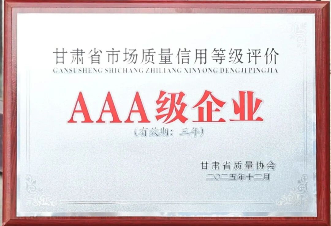 据悉,此次评定由甘肃省市场信用管理相关机构牵头组织,采用“资料审查+现场评审”的双重考核模式,从产品质量稳定性、服务体系完善度、行业影响力、关键业务流程管控、核心客户满意度,到技术创新能力、管理模式特色等多维度进行全面核验。其中,“AAA级”为该评定体系中的最高等级,获评企业需在合同履约、产品质量管控、客户服务保障、社会责任履行等关键领域均达到行业领先标准。
