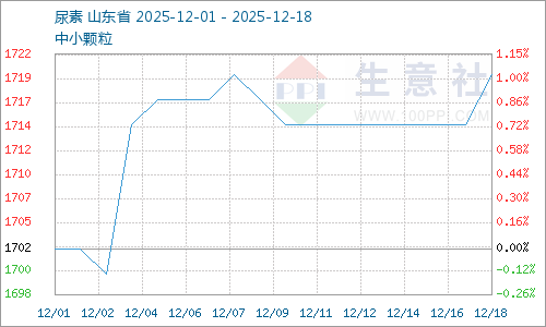 据生意社商品行情分析系统,截止12月18日,国内尿素市场参考均价为1720元/吨,较12月1日市场参考均价1702元/吨,国内尿素市场价格上涨幅度为1.03%。