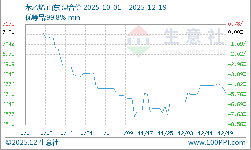 据生意社商品分析系统,本周苯乙烯市场弱势下跌。周初均价6774元/吨,周末均价6716元/吨,周内跌幅0.86%。