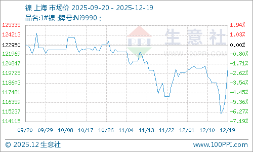 据生意社镍价格监测,本周镍价先跌后涨。截止周末,现货镍报价120416.67元/吨,较周初上涨2.37%,同比下跌3.5%。
