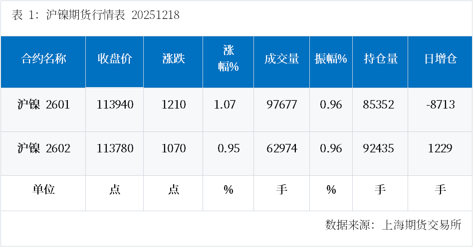 当日(20251218),沪镍期货在前一交易日反弹基础上延续震荡上行态势,市场情绪受印尼镍矿产量计划调整预期提振,但现货需求疲软制约涨幅。