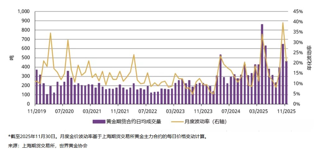 11月,上海期货交易所黄金期货日均交易量环比下降29%,至每日461吨,主要原因在于金价波动率降低。尽管交易量回落,但仍远高于2024年302吨的日均水平(图4)。2025年迄今为止,黄金期货日均交易量为463吨,显著高于2020年至2024年间216吨/日的五年平均水平。