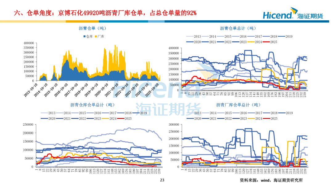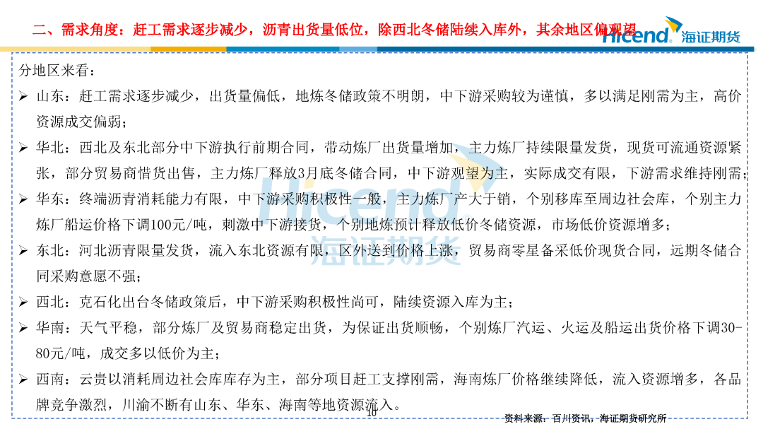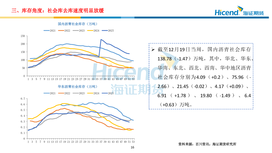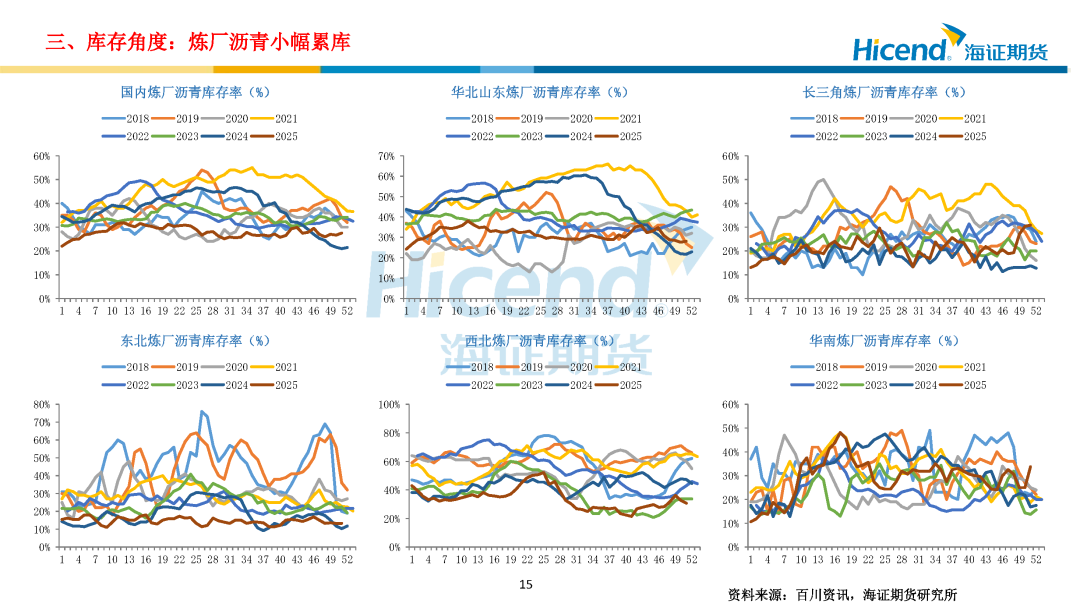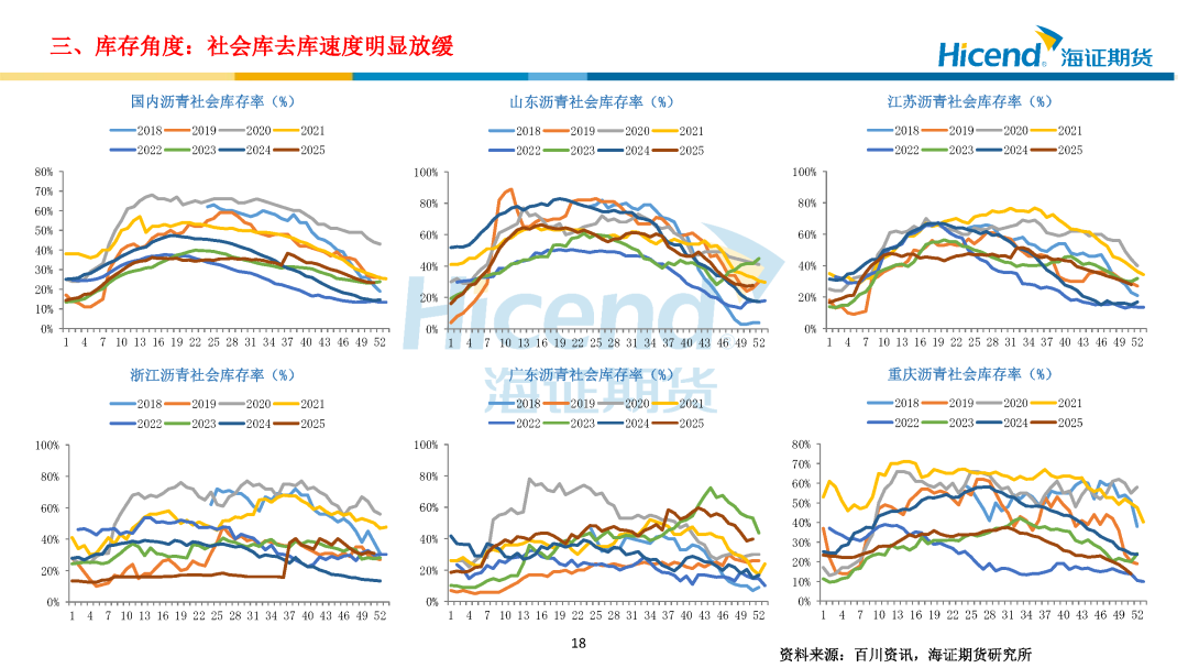 库存端:沥青炼厂小幅累库,社会库去库速度明显放缓。