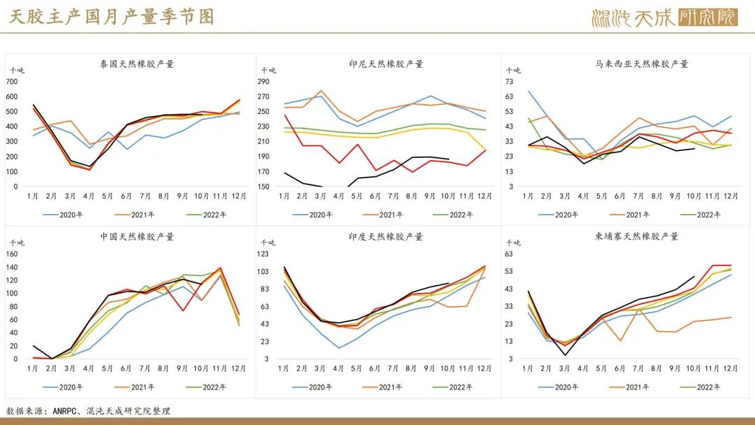 产量数据来看,10月ANRPC主产国整体产量同比下滑,在预期内,其中泰国保持略微下滑,马来减产明显,越南柬埔寨增量显著,而国内临近停割暂无放量。据ANRPC数据显示(预测值),10月ANRPC成员国合计天胶产量117.56万吨,同比去年下滑3.83%,1-10月累计天胶产量908.57万吨,同比去年增长0.35%;10月泰国天胶产量47.86万吨,同比去年下滑4%,1-10月累计天胶产量376.61万吨,同比去年增长2%。从数据来看,四季度上量预期存在,但可能大部分主产国的同比产量会略低于去年,这一预期的依据在于今年前三季度受原料高价刺激影响,主产国产量同比已兑现增长,而在4月开始原料已高位回落,其产胶积极性或在四季度弱于去年。