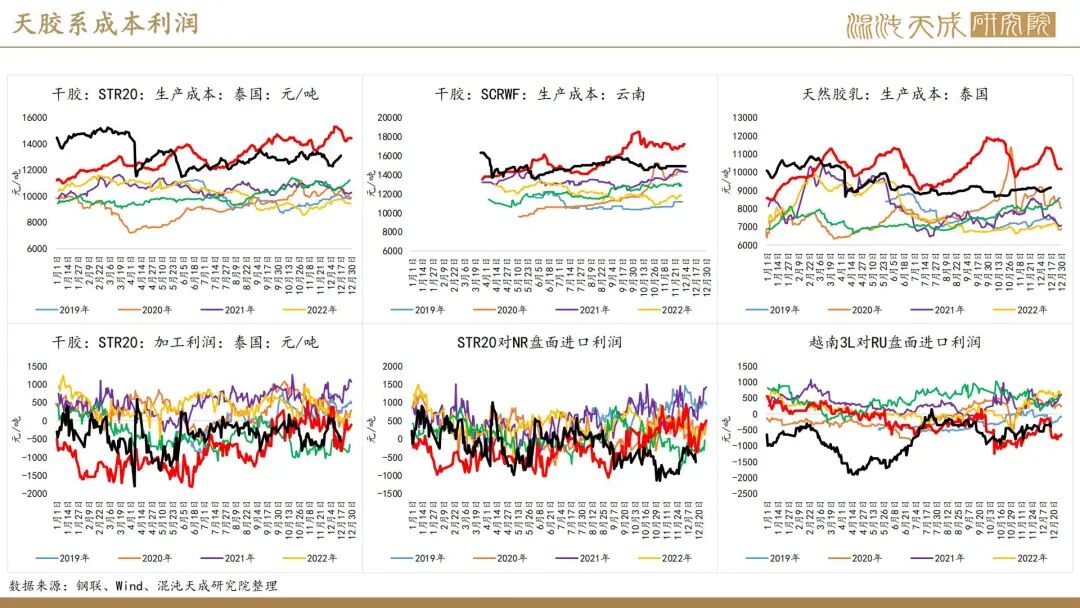 总的来说,近期胶价继续保持宽幅震荡,主因是宏观情绪支撑有限,产区供应扰动较少的背景下后续放量预期仍存,天胶的基本面可能有转弱预期。后续来看,首先是库存验证了近端的供需偏宽松,原料继续上涨的逻辑难寻,可能会在12月下旬迎来一波原料放量下跌以及受洪水扰动推迟的船期到港后的集中供应,故而弱预期这一点仍然明确。策略上,短期单边保持区间交易短进短出,深浅反套头寸可以阶段性止盈,关注社库累库趋缓节点配合宏观环境再考虑单边低多RU05。