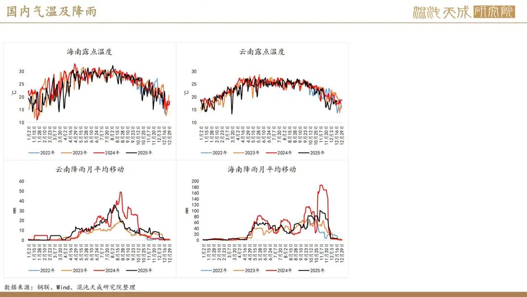 宏观政策变动、产区突发异常天气、地缘冲突激化。