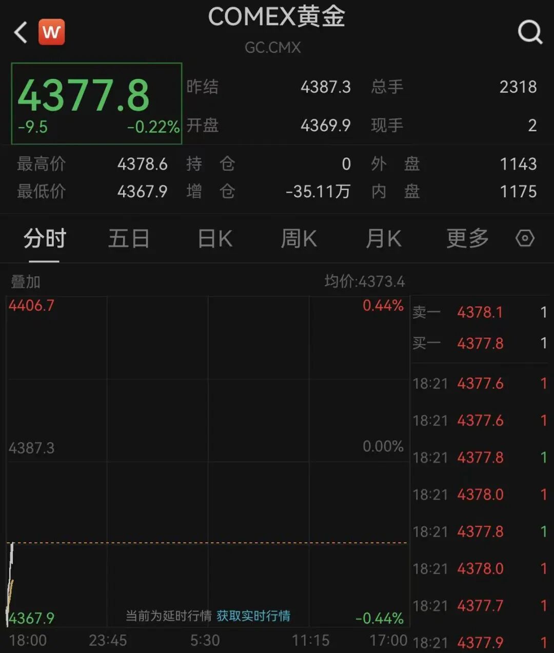 今早,现货黄金率先开盘,截至发稿,伦敦金直线走高,不过,COMEX黄金却出现飘绿走势,美联储选帅不确定性再度增加。