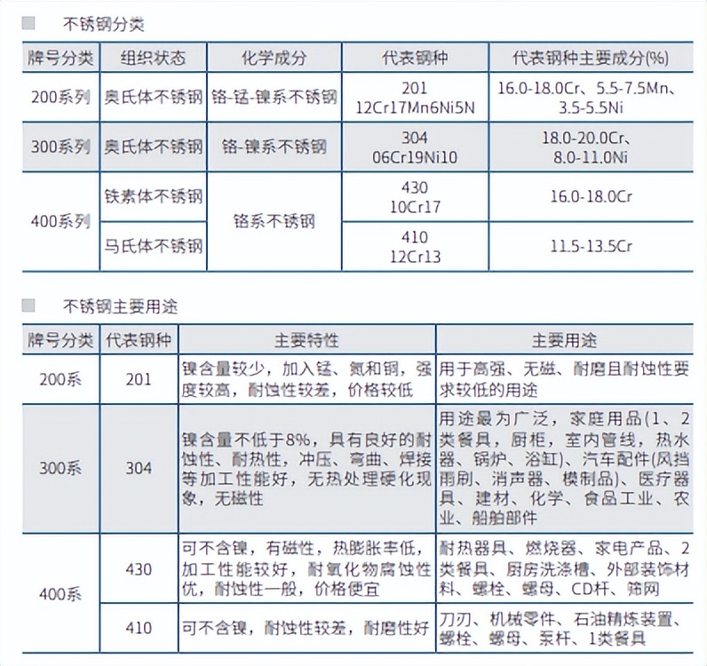 不锈钢的分类与用途介绍