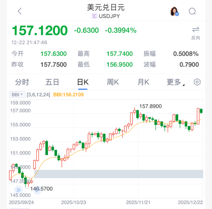 日本财务省去年为支撑日元在外汇市场投入约1000亿美元,出手区间大致在美元兑日元160附近。周一晚间,日元兑美元交投在约157.40。