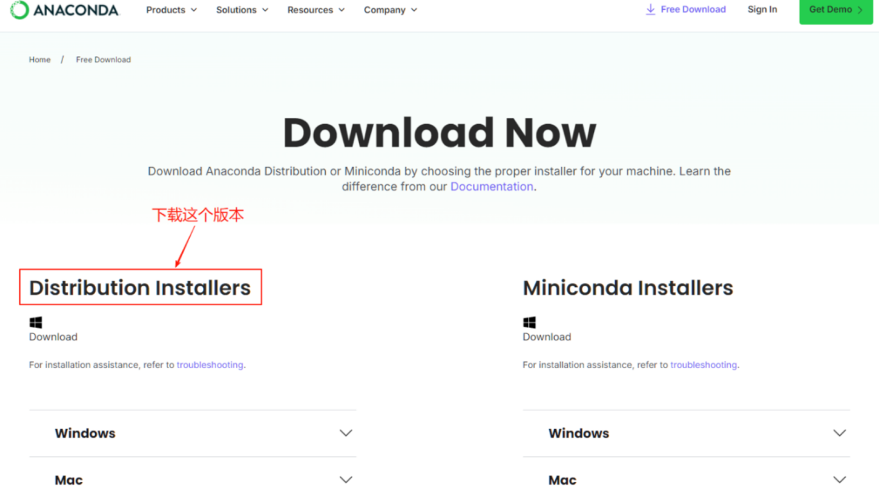 很多量化小白在 Anaconda 官网下载时,都会卡在这个选择上——到底是安装 “Distribution Installers” 还是 “Miniconda Installers”?