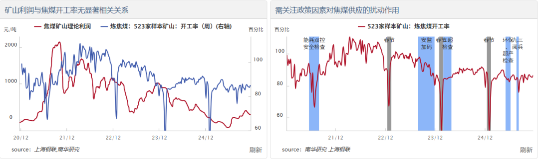 作为典型的民生和战略性行业,煤炭生产受宏观与行业政策的影响更大。历史经验表明,焦煤矿山开工率的变动往往与政策周期直接挂钩,而非简单跟随矿山利润波动。例如,2021年的能耗双控及安全检查、2023年四季度的安监加码、2024年二季度的山西“三超”检查以及2025年三季度以来的超产核查,均对焦煤短期供给产生了显著扰动。环保、安监与超产核查等行政手段,是能够直接影响煤矿开工率、从而调控煤炭供给与价格的政策工具。鉴于保障能源安全与稳定市场价格预期的宏观目标具有长期性,预计到2026年,此类直接针对生产端的调控政策,仍将是导致国内煤炭供应出现阶段性紧张或宽松,进而扰动价格节奏的关键变量。