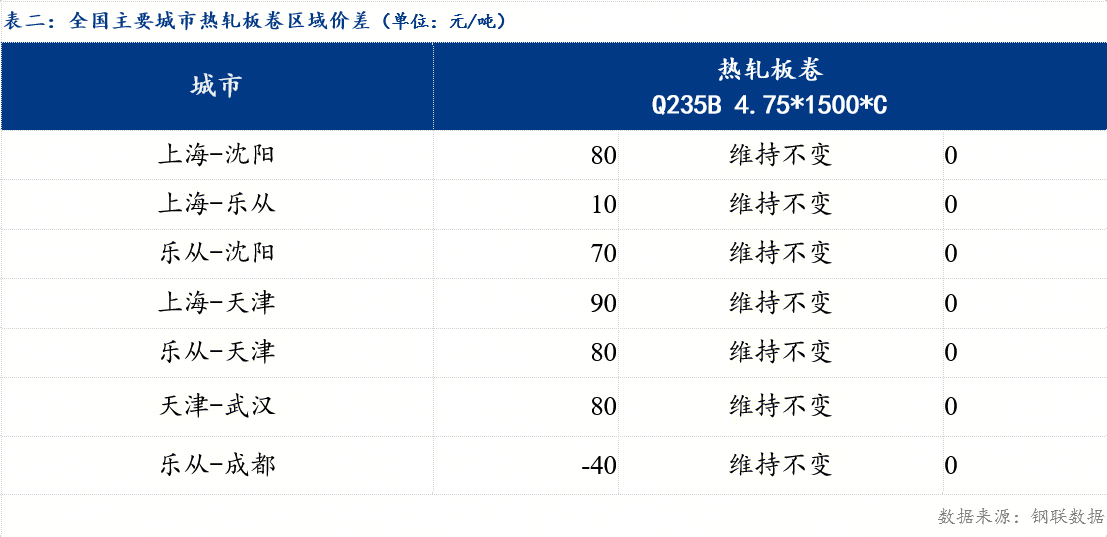 从区域价差来看,华东与东北价差80元/吨,较上一交易日持平 ;华东与华南价差10元/吨,较上一交易日持平 ;华南与华北价差80元/吨,较上一交易日持平 。