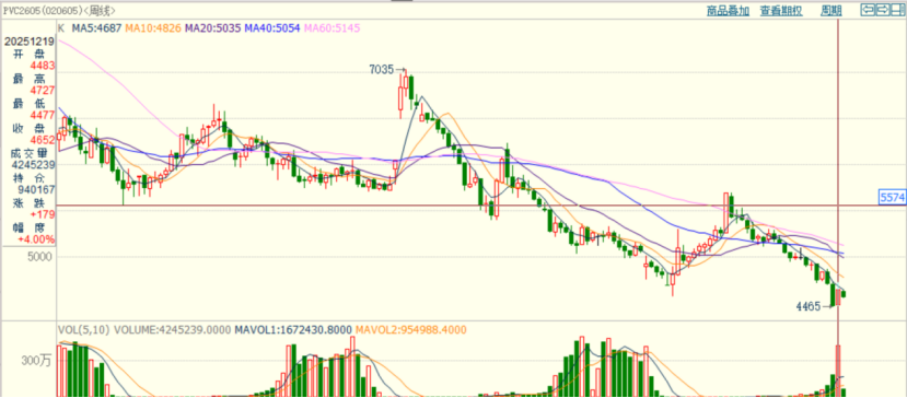PVC:PVC期货当周(20251215-20251219)前四天以连续上涨为主,周五出现下跌,但整体收阳线,再次回到4600元/吨附近,暂时结束跌势。