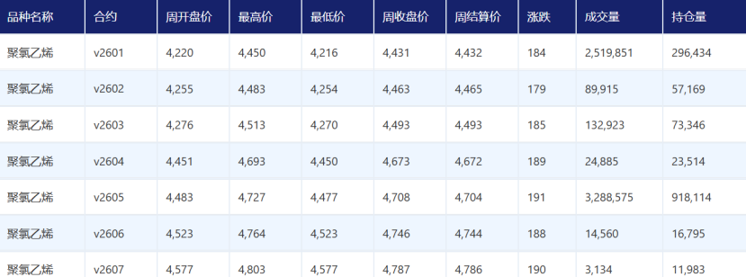 PVC期货周度行情,整体价格上涨为主,止跌企稳,持仓量和成交量均上涨。