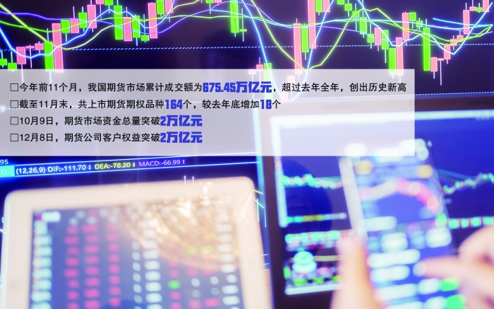面对充满不确定性的市场环境,越来越多的经营主体开始关注并参与期货市场。数据显示:今年前11个月,我国期货市场累计成交额为675.45万亿元,超过去年全年,创出历史新高;10月9日,期货市场资金总量突破2万亿元;12月8日,期货公司客户权益突破2万亿元;产业客户、境外客户参与度均明显提升。