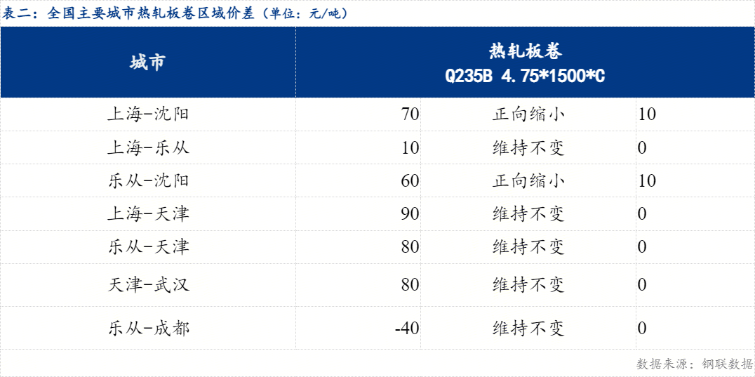从区域价差来看,华东与东北价差70元/吨,较上一交易日正向缩小10元/吨;华东与华南价差10元/吨,较上一交易日持平 ;华南与华北价差80元/吨,较上一交易日持平。