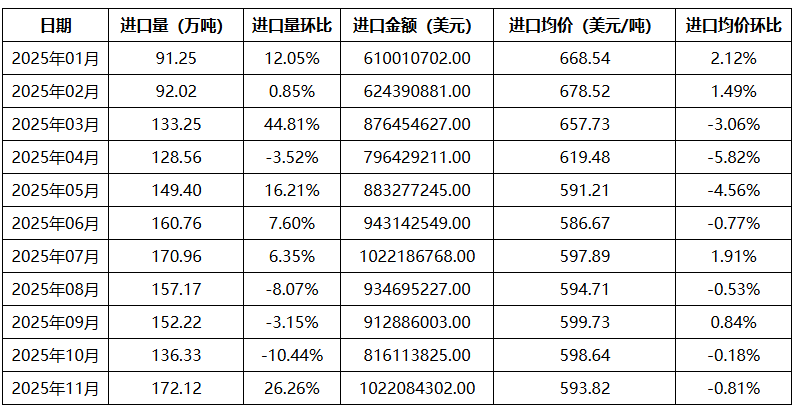 进口金额来看,11月份进口石脑油均价在593.82美元/吨,环比下跌0.81%,进口成本虽相比国内货源优势有限,但由于国内石脑油供应稳定性、指标稳定性均难以达到进口商要求,因此进口商进口积极性向好。