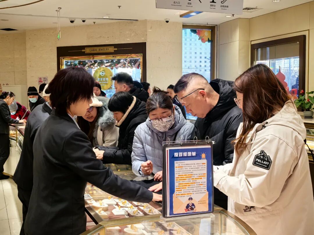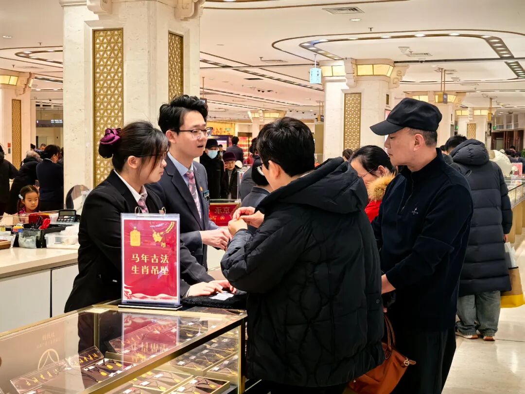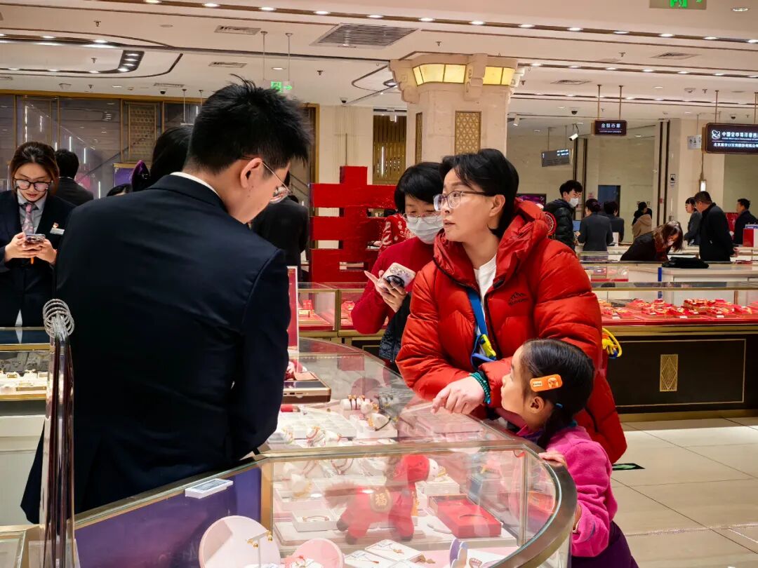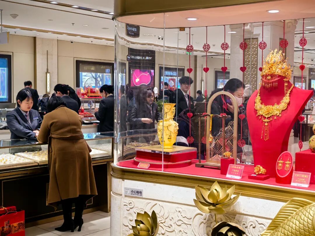 在北京菜市口百货大厦(以下简称菜百),黄金柜台前人头攒动。现场既有消费者让销售员抓紧开单的催促声,也有相互交流“会不会再涨”的讨论声,热闹得连空气都透着浓郁的选购氛围。