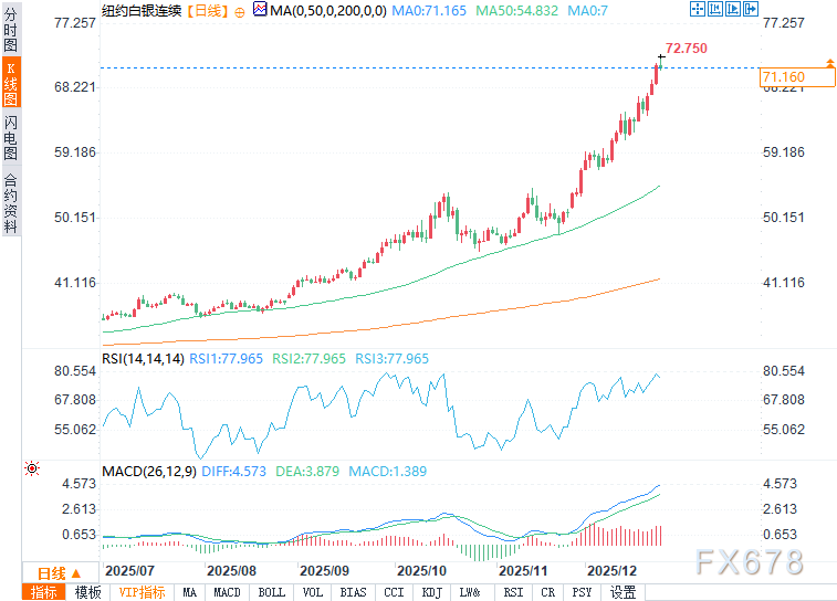 3月白银期货:多头的下一个上行目标是推动价格收于75.00美元的强劲技术阻力位上方;空头的近期下行目标是将价格压至65.00美元的关键支撑位下方。第一阻力位见于隔夜历史高点72.75美元,进一步阻力位在73.00美元;第一支撑位为71.00美元,后续支撑位在70.00美元。