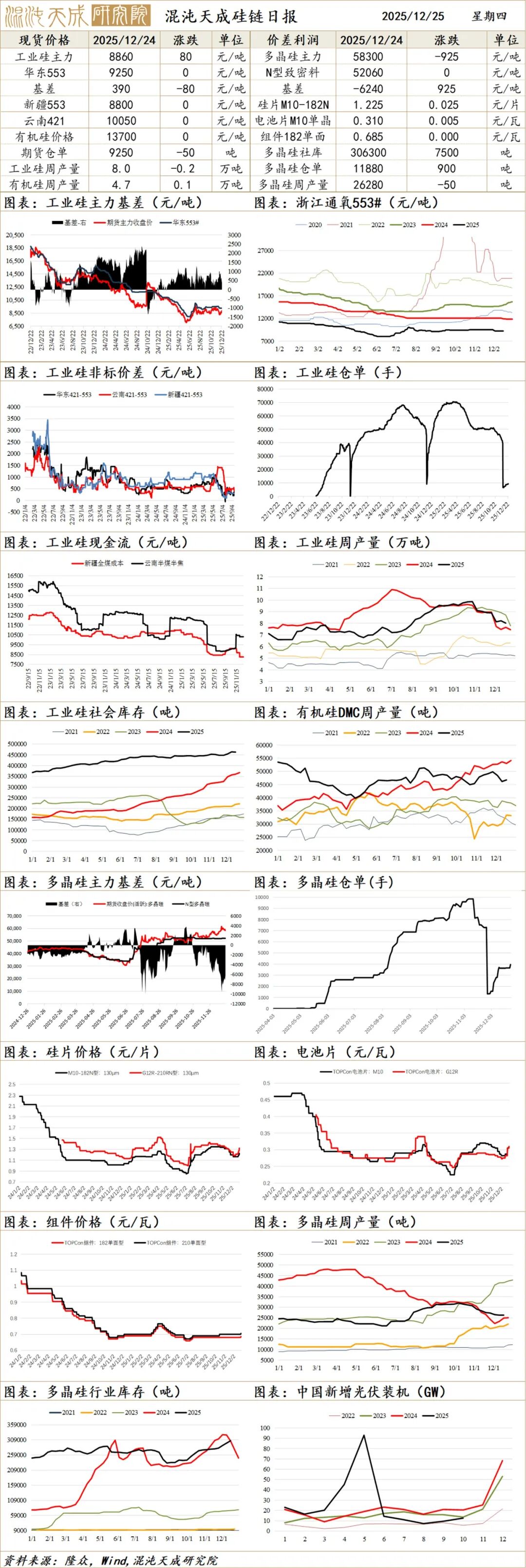 1、成本支撑有崩塌预期。目前硅煤暂未大跌,受动力煤、焦煤持续大跌影响。以目前最低煤计算成本在8300-8800。动力煤仍未止跌,但国内反内卷预期再起,关注持续性。