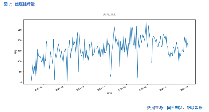 上周,焦煤挂牌量为187.435万吨,周环比增加14.23%;竞拍成交率为82.4%,周环比增加4.79个百分点。