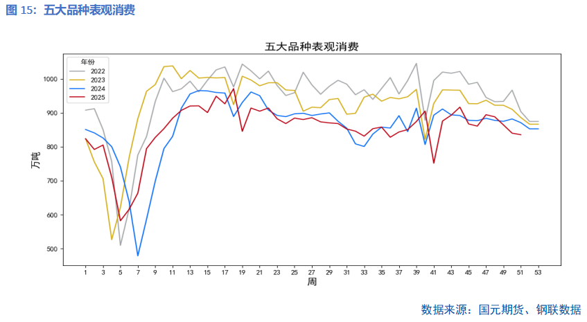 成材:五大品种钢材表观需求延续下降,下游消费处于淡季。