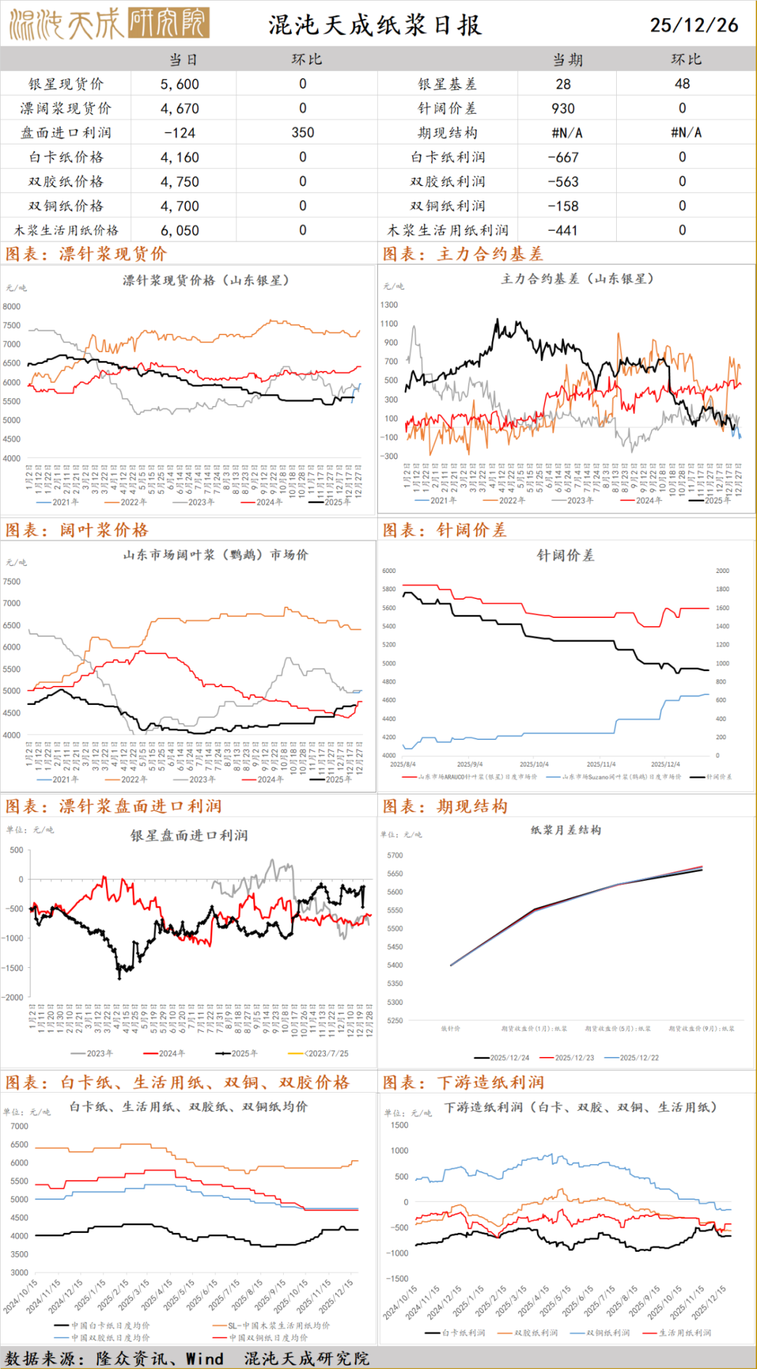纸浆:昨日国内针叶浆现货稳定,银星5600元/吨(0),俄针5400元/吨(0);阔叶浆现货稳定,金鱼4670元/吨(0);针阔叶浆价差930元/吨(0),纸浆市场整体呈现交投清淡、价格持稳;白卡纸市场行情平稳运行为主,市场利好消息不多,业者看稳为主;生活用纸市场价格震荡运行,场内整体交投氛围改善不大,市场情绪趋于谨慎状态;文化用纸市场纸厂开工稳定,市场货源供应充裕;盘面高位震荡,近年针叶浆整体产能扩张有限,持续低价导致上游高成本浆厂出现停产、关闭产能等情况,下方5000元/吨成本支撑明显,同时交割品取消部分俄针品牌,对远月估值也有利多,国内纸厂整体维持刚需购买,在国内春节旺季结束前,可以考虑回调逢低买入。