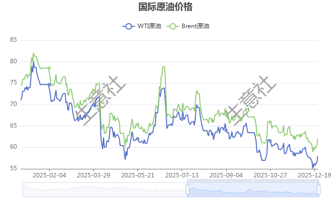 成本面:原油市场直接影响国内成品油行情,其波动跟原油市场息息相关,2025年国际形势波谲云诡,整体来看原油市场“过剩元年”,OPEC+调控失效、非OPEC+增产、需求弱增三重因素叠加,推动原油价格震荡下行,年末过剩格局确认。国际原油同样经历了来自宏观经济的压力,供应中断的风险和需求下降预期的影响,2025年国际原油市场一波三折,具体原油市场价格走势如下: