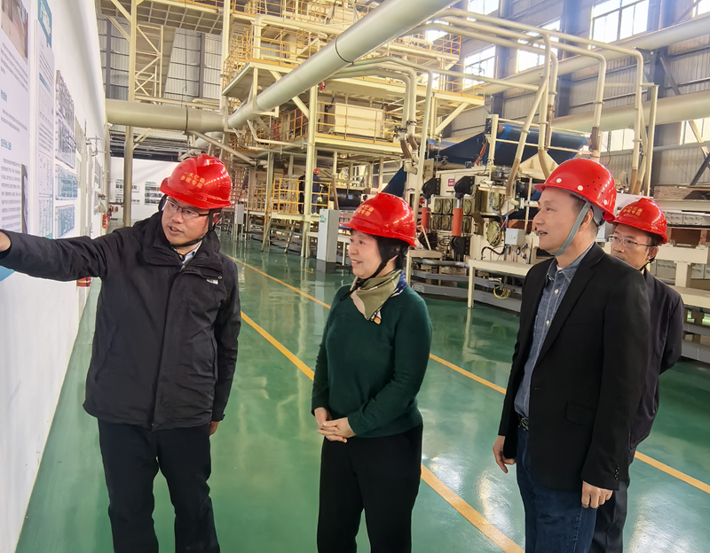 国机集团第三监督办主任董建红调研全球首条废旧纺织品再生纤维板连续压机生产线