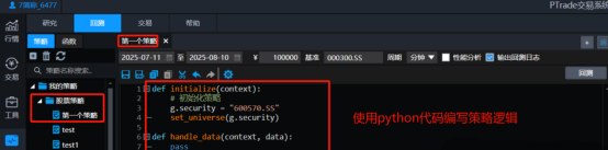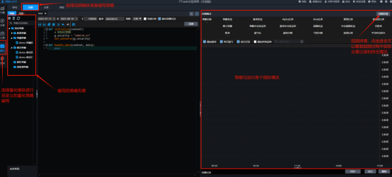 PTrade界面设计更为友好,操作流程简洁,适合新手用户快速上手。提供了更直观的图表和数据分析工具,方便用户进行策略开发和回测。Ptrade界面如下: