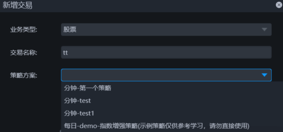 l 点击回测下面的左侧部分的+号,添加量化策略: