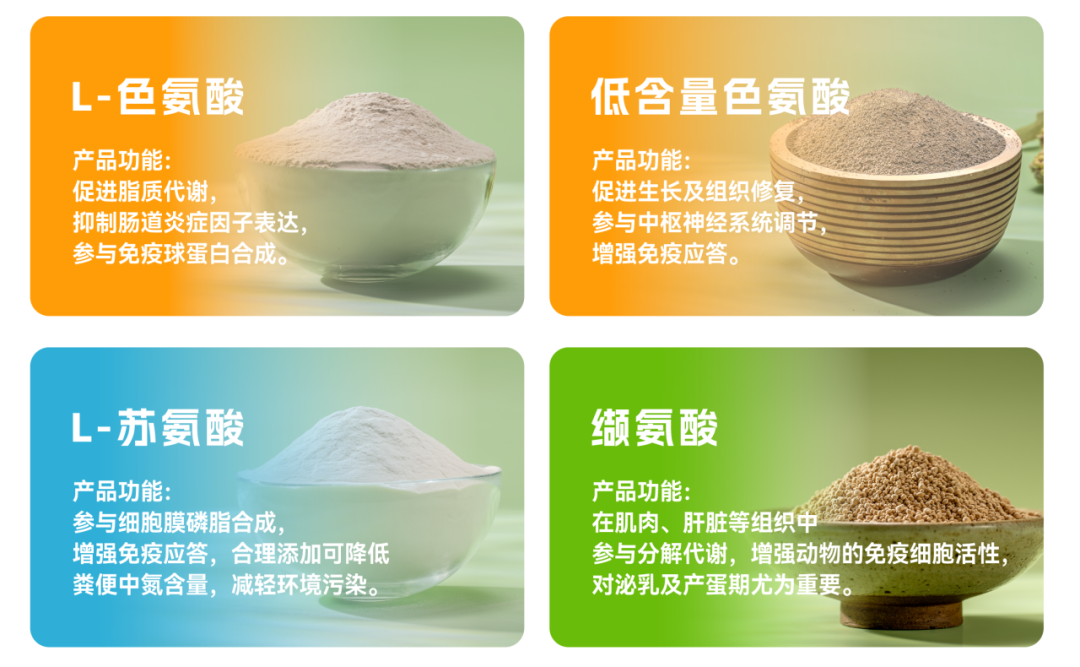 针对行业痛点,象屿生化研发饲料级氨基酸系列产品,构建起“低蛋白日粮+氨基酸平衡”的科学养殖模式:在肉猪饲粮中添加苏氨酸提升生长性能,在蛋鸡饲料中加入色氨酸减少应激反应,让动物按需吸收营养,避免蛋白质浪费,间接降低对豆粕等蛋白原料的依赖量。
