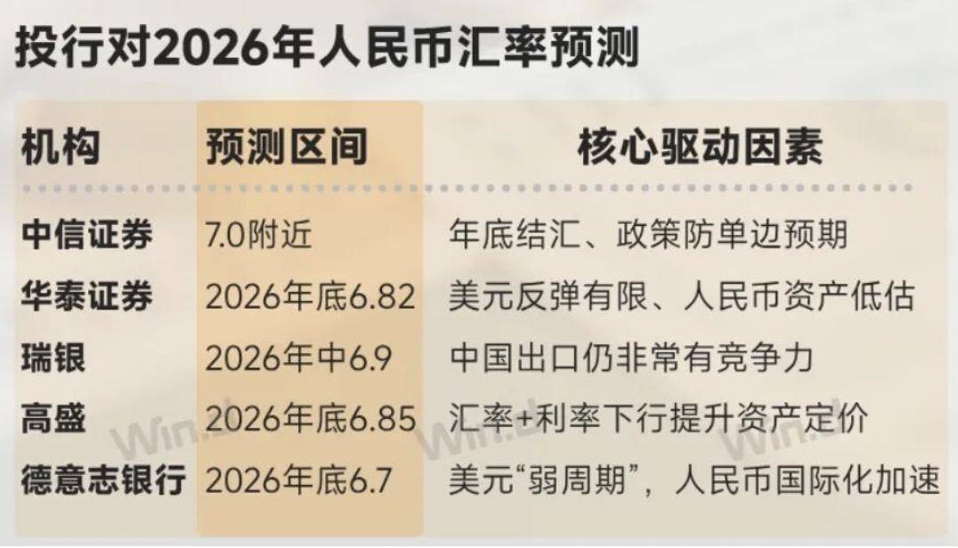 对于2026年汇率走势,多家机构认为,有望温和升值。中金公司研究部外汇研究首席分析师李刘阳表示,明年,人民币汇率走向将继续平衡好经济增长、国际收支稳定和人民币国际化等多重目标,走势或将相对平稳。