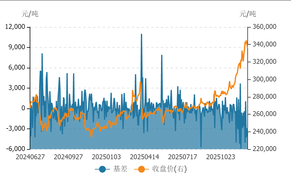 比较11月以来二者涨幅,沪锡、伦锡整体涨幅也基本保持一致,其间最大涨幅分别为21%、22%左右,并无明显差异。