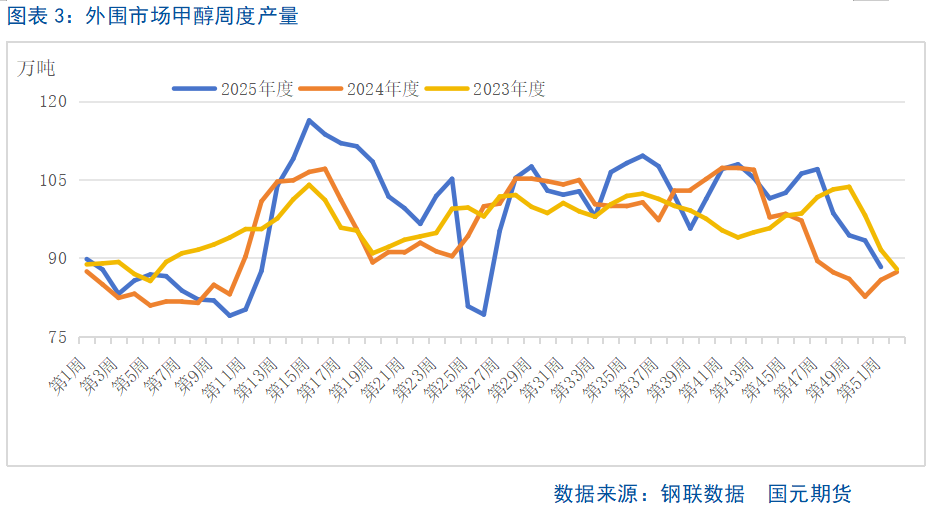 当前市场的突出矛盾在于,在产能增量有限的背景下,存量装置的产出效率显著提升。数据显示,2025年以来,海外甲醇装置平均开工率为67.61%同比上升3.3个百分点,产量同比增长3.04%,处于近年来高位。这表明,供应压力来源已从新产能释放转向存量产能更充分释放,生产商在现有成本结构下的开工意愿成为决定短期供应弹性的主要因素。