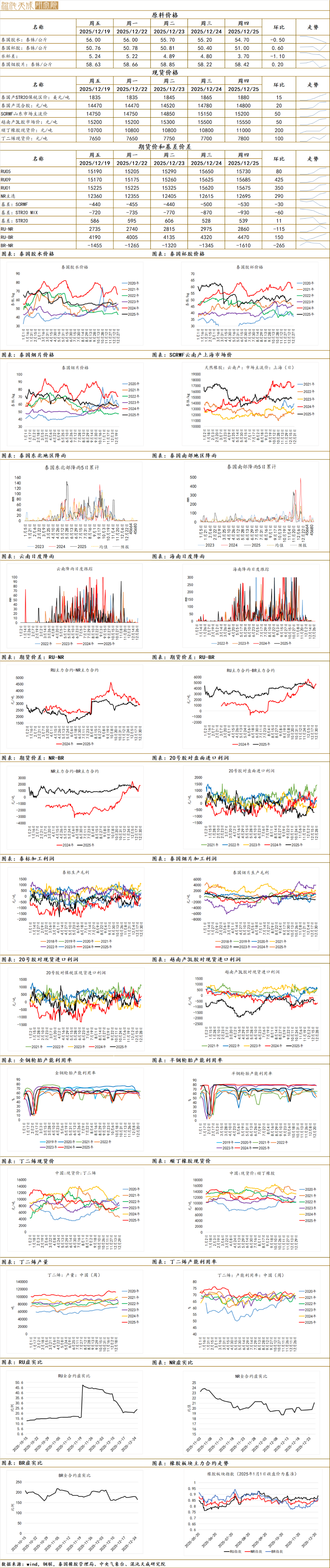1.机构消息:截至2025年12月21日,中国天然橡胶社会库存118.2万吨,环比增加3万吨,增幅2.5%。(隆众资讯)