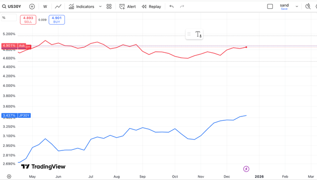 日本的整个财政和货币体系都是建立在永久低利率的假设之上的,这种货币实验或许即将结束——日本国债收益率正在上升。一些投资者认为,如果日本债券收益率完全与美国债券收益率趋同甚至超过美国债券收益率,这可能会“摧毁”全球债券市场。