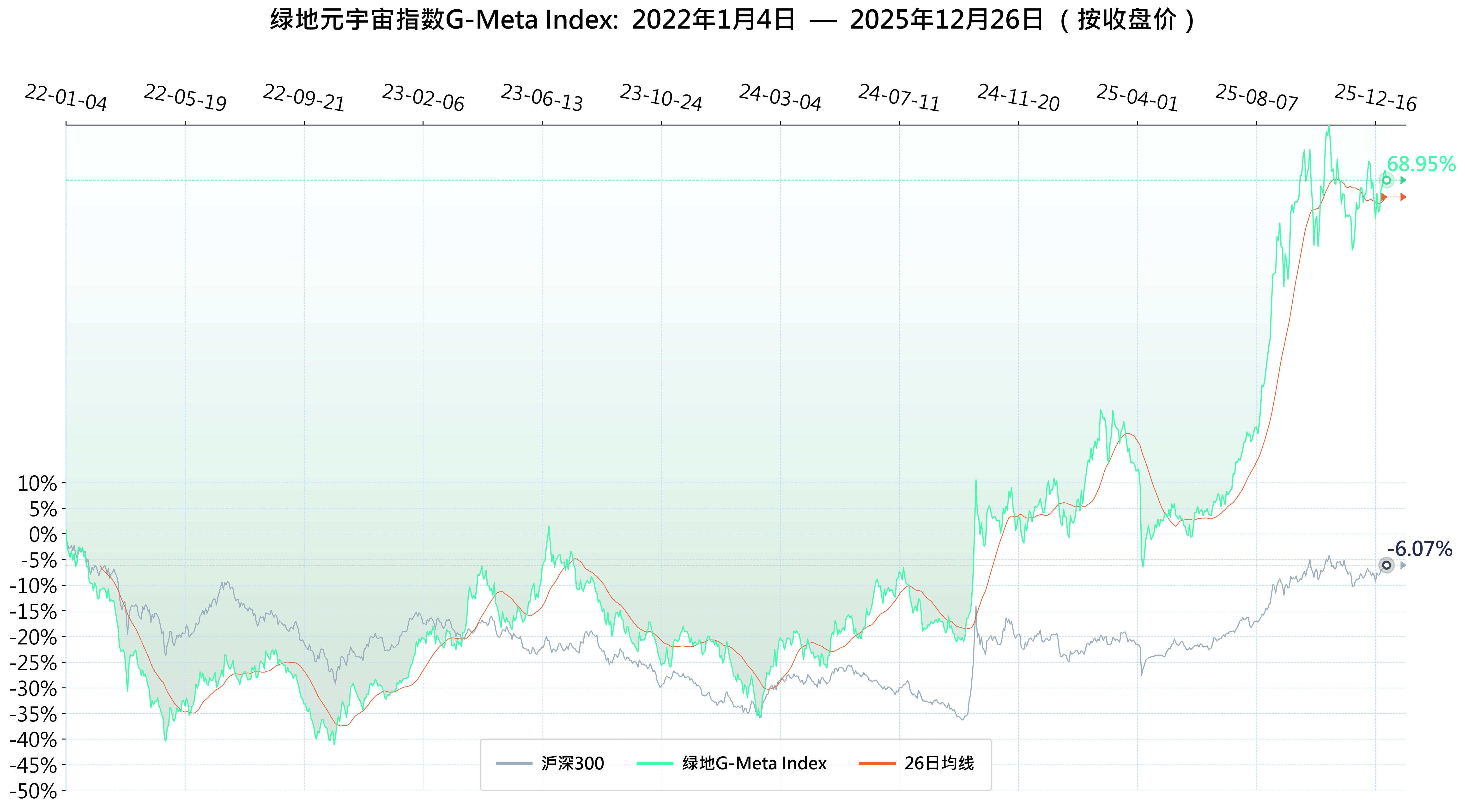 绿地元宇宙指数G-Meta Index由绿地数字经济产业研究院与复旦大学国际金融学院、申万宏源研究所、上海金融信息行业协会联合编制。